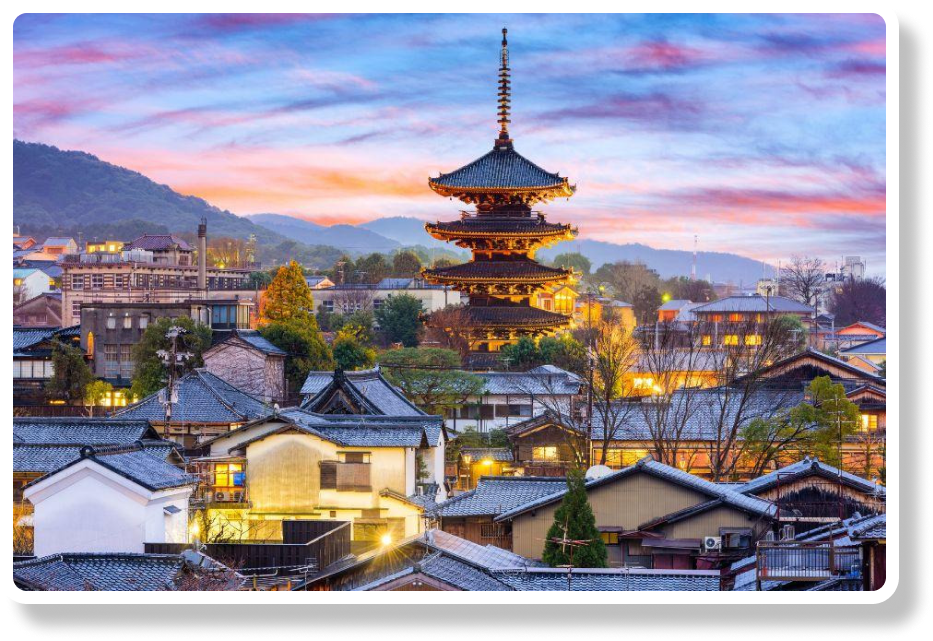 Kyoto adalah pusat budaya dan sejarah Jepang yang kaya dengan warisan tradisional. Beberapa tempat yang patut dikunjungi di Kyoto adalah Kuil Kiyomizu-dera yang terkenal dengan balkon kayu yang menjulang tinggi, Kuil Ginkaku-ji (Paviliun Perak) dengan taman Zen yang indah, dan Kastil Nijo yang megah dengan ruang-ruang bergaya tradisional dan kebun yang indah.